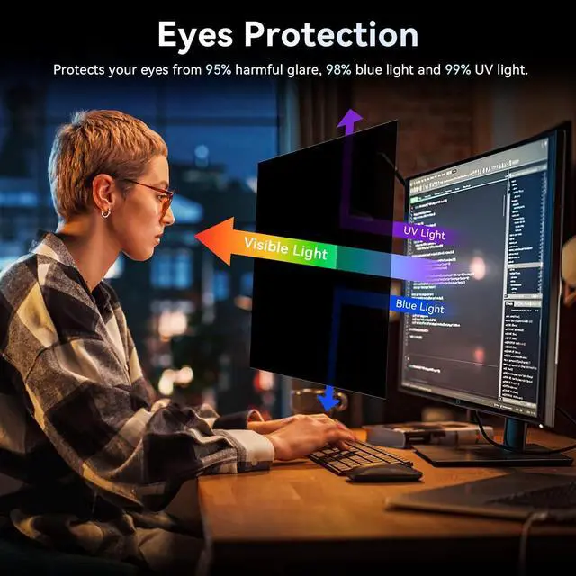 20 inch privacy screen for monitor use filtering optical materials imported from Japan can reduce 92% of blue light and 98% of UV light, and filter all harmful light emitted from the screen. The high-transparent and reinforced built-in protective layer not only presents high-definition picture quality, but also protects your screen from scratches. Hurry up and place an order, Own privacy screen for computer monitor 20 inch, Protect your screen and eyes.