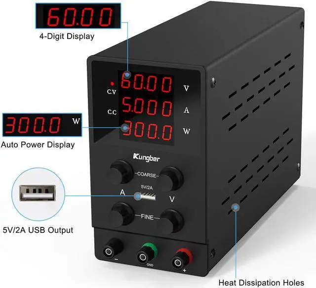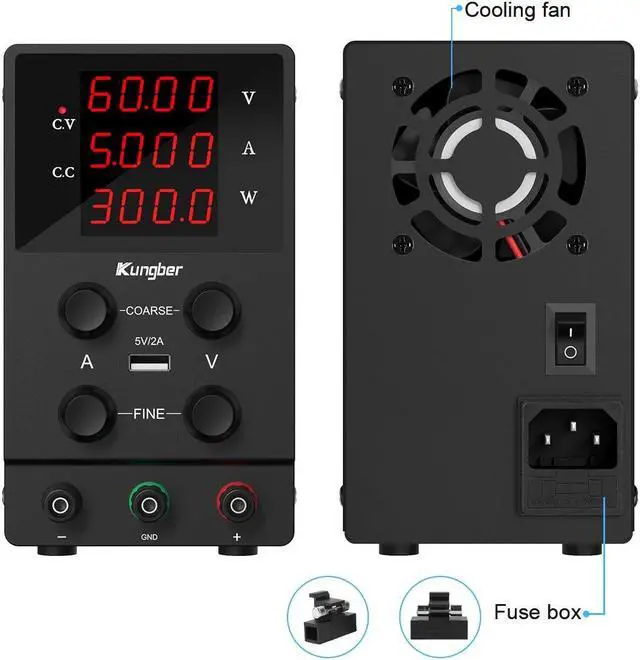 Safety: Many safety measures are adopt in Kungber DC bench power supply- Grounding wire, Leakage protection, Thermal protection, Voltage overload, Power overload and Short-circuit protection. Kungber power supply use premium electronic components, provide reliable working status and prolong the life of product effectively. When the working temperature is more than 122/50, the intelligent thermal protection will active the cooling fan to lower the temperature according to the load.