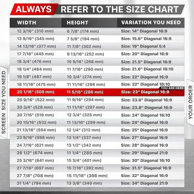 Width: 20 1/16" ( 20.0 inches/509 mm), Height: 11 5/16" ( 11.3 inches/286 mm) - Aspect Ratio 16:9, then this filter is good for you. Contact us if you have any questions about dimensions.