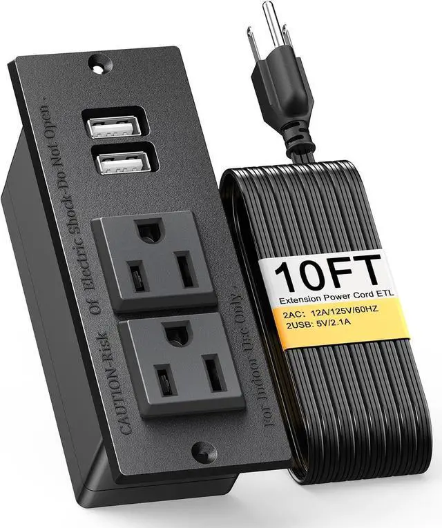 Extra long power cord, the 10ft extra long extension cord provides optimal reach, such as end tables/sofa table /rv cabinets/drawer.