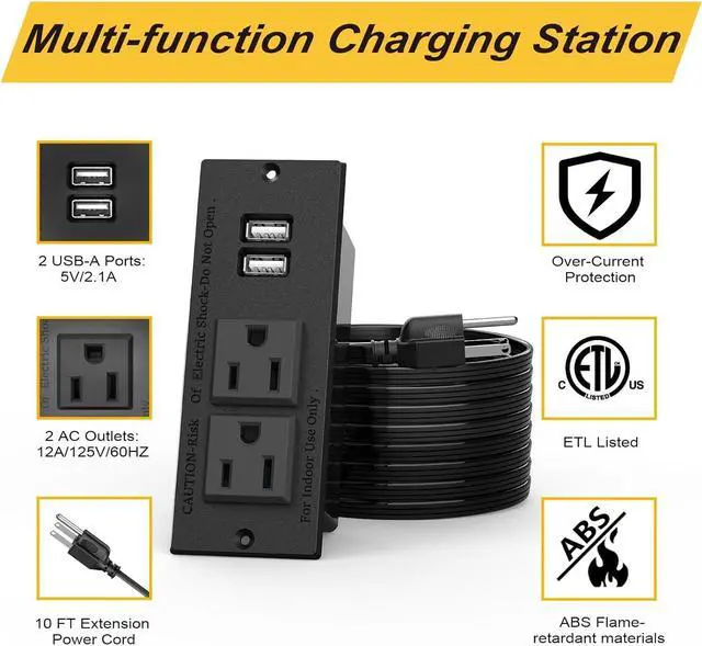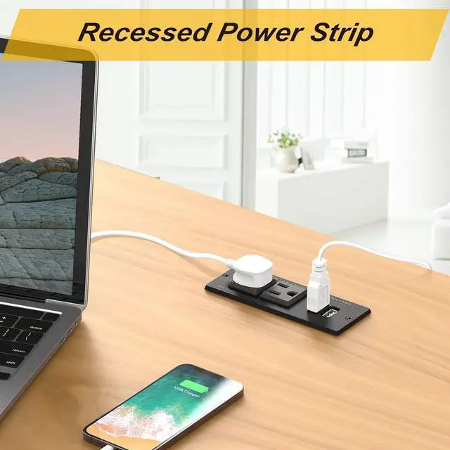 The generous desk Recessed power strip features 2 AC outlets and 2 usb port ,provide people power source within reach. No more crawling under the desk to find power strips.Widely used in hotel/office/home etc.