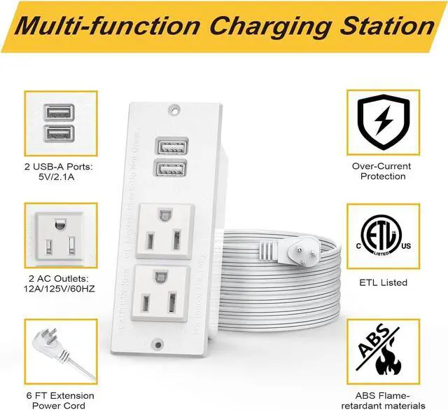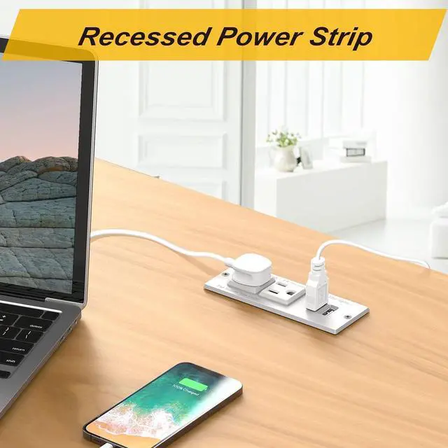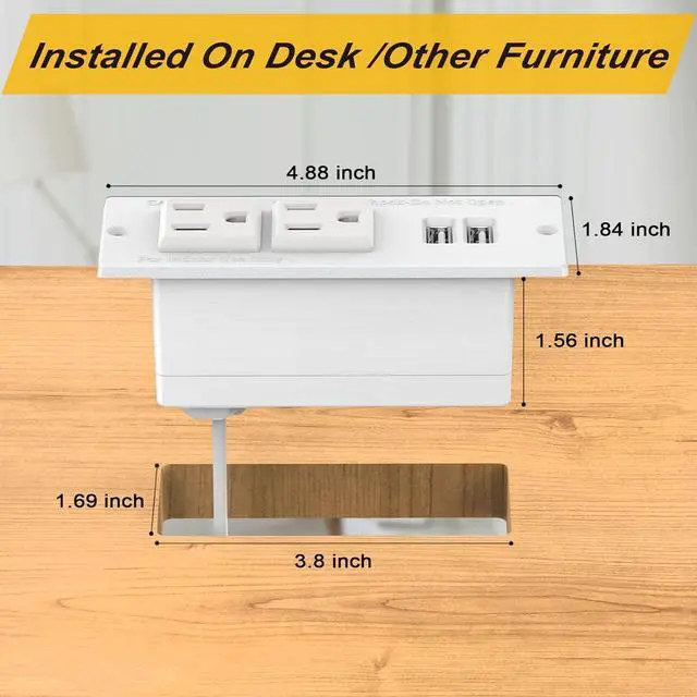 The generous desk Recessed power strip features 2 AC outlets and 2 usb port ,provide people power source within reach. No more crawling under the desk to find power strips.Widely used in hotel/office/home etc.