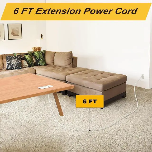 Extra long power cord, the 10ft extra long extension cord provides optimal reach, such as end tables/sofa table /rv cabinets/drawer.
