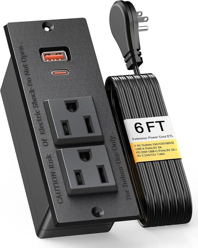 Recessed Power Strip USB C PD 20W, Recessed Outlet with USB Ports, Flat Plug Desk Power Strip for Sofa Drawer Cabinet Nightstand, 6 FT Extension Cord Conference Table Power Hub