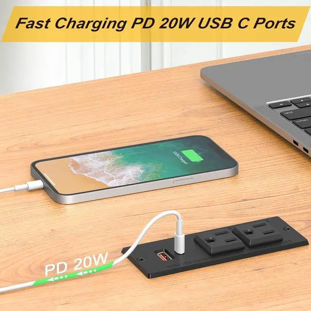 Outlet design for furniture, perfect for installed it inside (or the side) of desk, table, workbech, drawer, cabinet, nightstand, sofa, couch, kitchen counter island and other furniture.