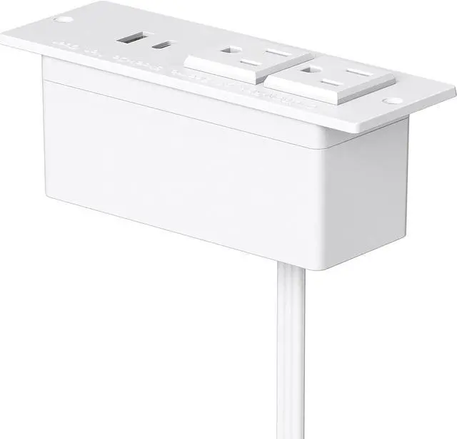 Conference Recessed Power Strip,20W USB C Fast Charging,Furniture Recessed Outlet,2 Outlets,2 USB Ports Table Power Strip,Flush Mount Power Strip for Side Table,6ft Cord,Flat Plug White