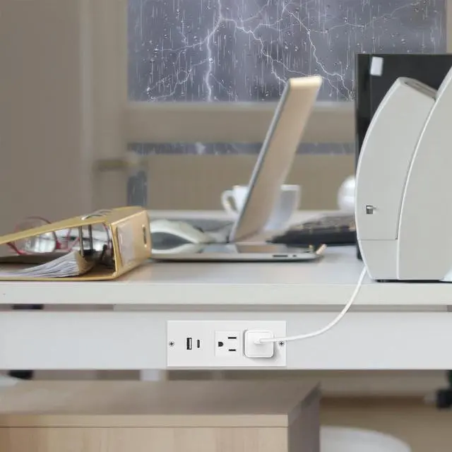 Creative Recessed Desktop Design Space Saving:This unique recessed plug in outlet get rid of hefty adapters and messy plugs.