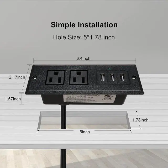 [GUARANTEED DESK POWER BAR] Built-in Anti-Fire ABS+PC Material, the quality and performance complying with ETL Certification.