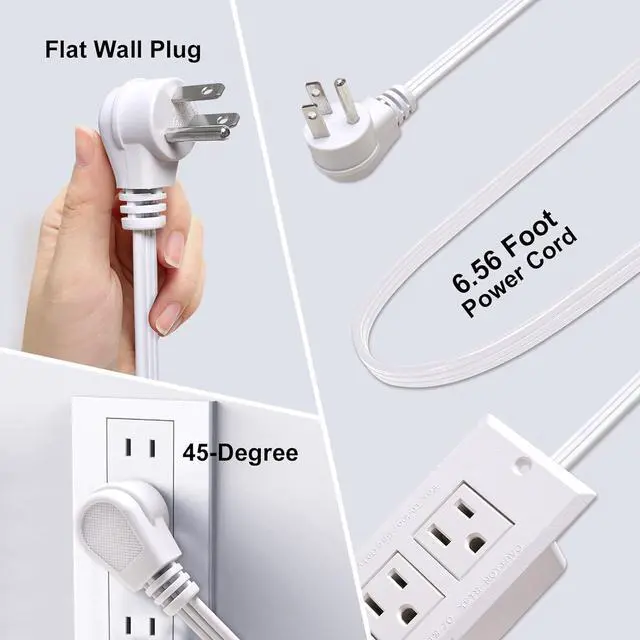 [Right Angle Flat Plug]- The 6.56 ft-long extension cord with 45-degree low-profile angled plug design doesnt block your desk cabinet sofa closing to the wall.
