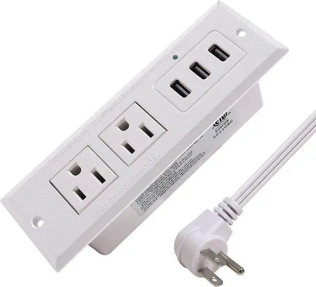 Desk Power Strip with USB Recessed Mounted Desktop Power Outlet 2 Outlets 3 USB Ports (15W/3A) Flat Power Plug, Charge Station for Table Cabinet Sofa Counter (3A/15W ) White