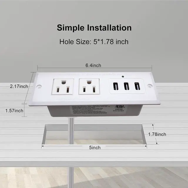 [GUARANTEED DESK POWER BAR] Built-in Anti-Fire ABS+PC Material, the quality and performance complying with ETL Certification.