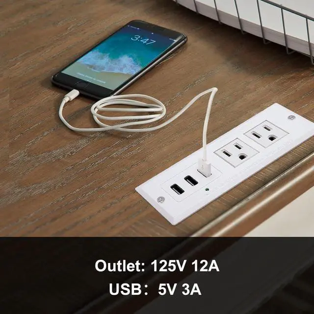 [Desk Power Bar with USB Charge for All] Power Bar with 2 AC outlets (1500W/12A), + 3 USB-A ports(15W/3A), provides ultimate convenience for your appliances and mobile devices.