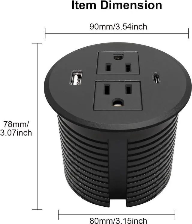 Embed Desktop Power Grommet Insert the power grommet into desktop corner no more power cable hanging, keep your desk/ cabinet island clean and improve the desk/cabinet usage rate.
