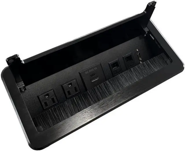 High-quality Materials The Table power box lid is made of 6063 aluminum, it is made by CNC precision machining, it is finer and thicker than pulling by aluminum. The recessed parts are made of iron. Fully enclosed bottom box, it is safer and more beautiful than before.