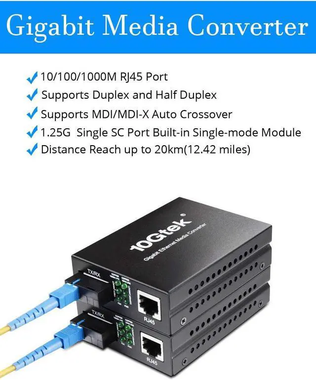 1000M Single SC Fiber Port Built-in 1000Mbps Single-mode Fiber Module with Single SC ports, link Single-mode Single SC Fiber cable, SMF, up to 20 km (12.42 miles), 1310nm/1550nm, 1 Pair.
