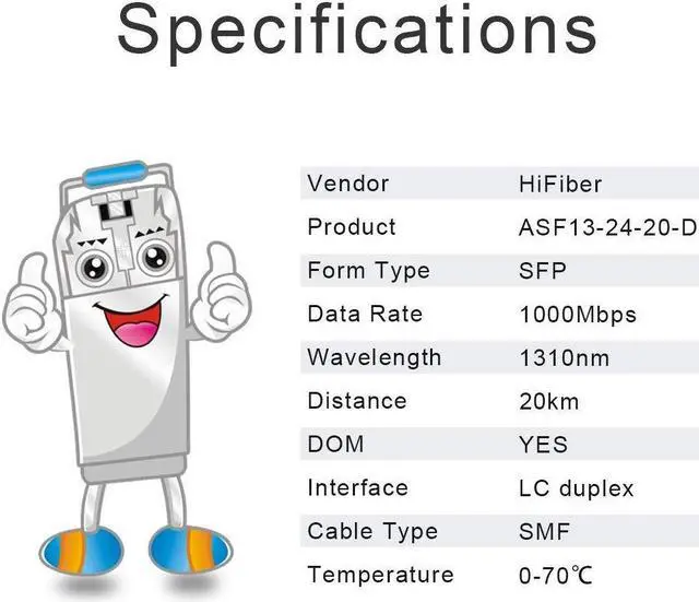Low Power Consumption: Less than 1.05 watt power consumption, that can save costs wisely. Low EMI and advanced ESD protection. Each sfp module is individually done test before packing.