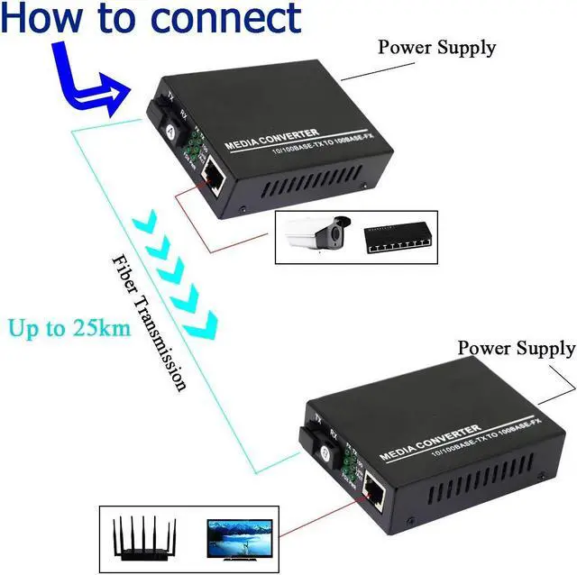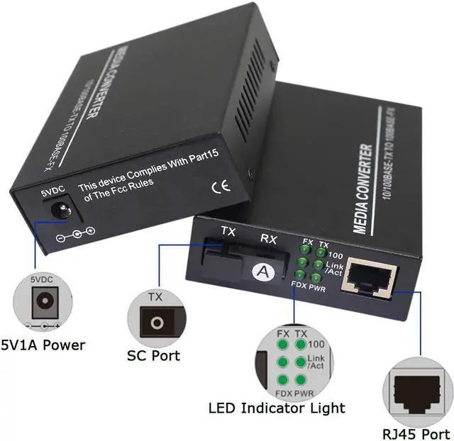 Easy to Install and Compact Design PLUG & PLAY - Simply plug in Single SC optical port and UTP port, and it will work right away. The measurement is 9.3 cmx 7.1 cm x 2.7 cm( 0.3" x 0.2" x 0.1" ), which gives you flexible installation options., Sturdy And Durable, The optical fiber transceiver are protected by high-quality metal casing, prevent excessive capacitance, strong resistance to fall off, suitable for indoor and outdoor environments.