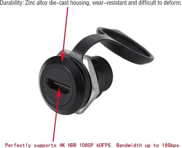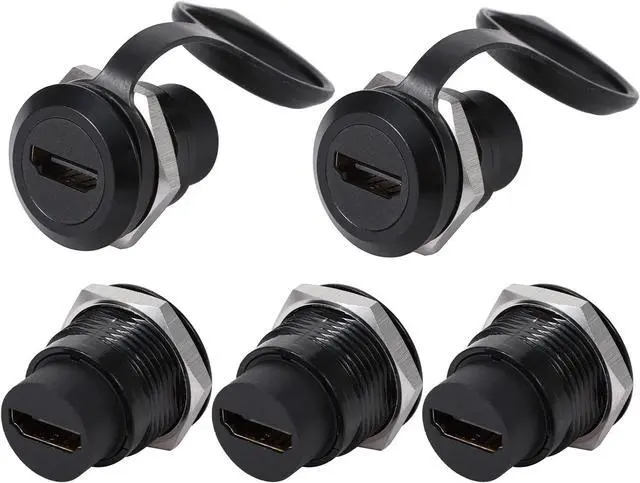 5PCS HDMI 2.0 Panel Mount Connector, USB Pass Through Cable Coupler 4K 30Hz 3D and HDR Female to Female HDMI Bulkhead Adapter with Weatherproof Dust Cap