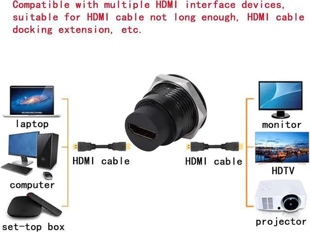 The HDMI 2.0 panel mount connector is a type of HDMI port that can be mounted onto a panel or enclosure, providing easy access for connecting HDMI devices. It supports high-definition video and audio signals up to 4K resolution at 60 frames per second, as well as 3D and deep color modes.