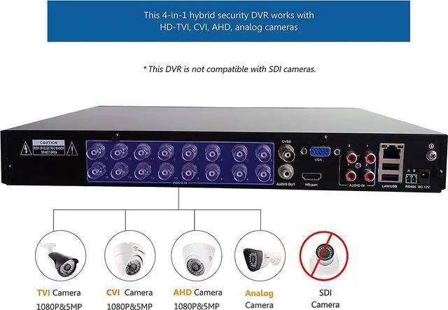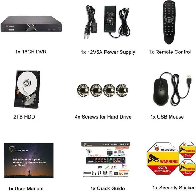 TIGERSECU's Super HD hybrid security DVR is a full featured hybrid digital video recording system designed for use with 2MP (1080p) HD TVI, AHD, CVI, and analog security cameras. For optimal performance, use this TIGERSECU DVR with TIGERSECU security cameras.