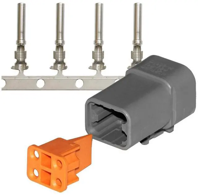 DTP Deutsch Plug Repair Kit - 14-12 AWG (4 Position) id="isPasted">DTP Series Deutsch Connectors are the solution for power application requirements. The DTP line was developed to handle the need for higher amperage, multi-pin economical connectors. Each circuit is capable of continuous 25 amp service. Deutsch solid contacts (14-12 AWG) are included in the packs. Contact a Pacer expert with any questions that you may have.