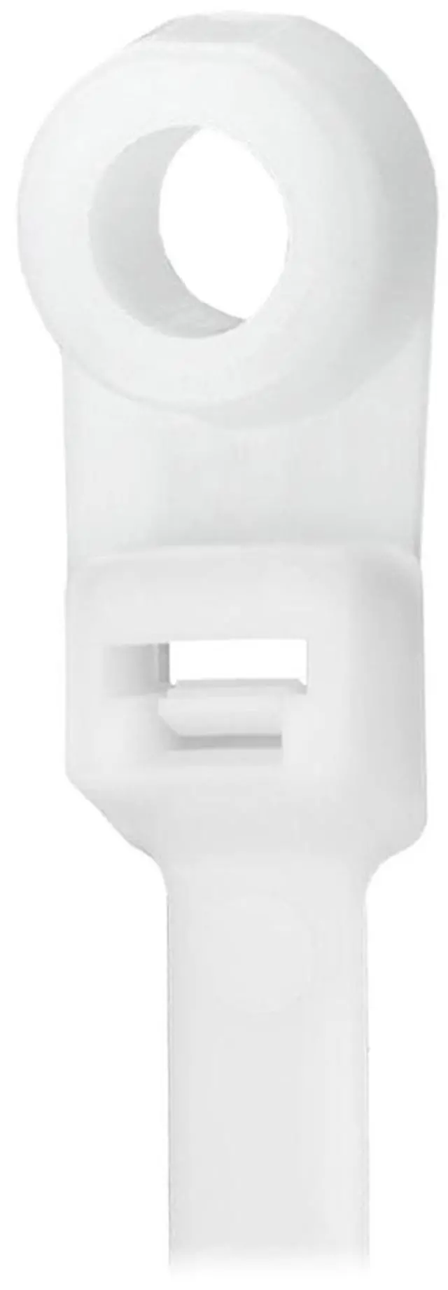 8" Cable Tie with Mounting Ring - Natural Color - 50lb Tensile Strength - 2" Bundle Diameter - 100 Piece BagCable ties are one of the most common wire management used today. They are found in a variety of industries where they are used to secure wire bundles, cables, or other surfaces. They are known for their ease of installation and are built to last in tough environments. Made from Nylon 6.6, the white cable ties are built for indoor use and the black cable ties are meant for both indoor and outdoor usage.