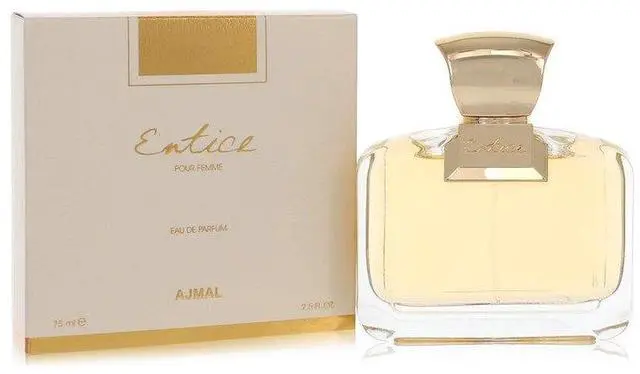 : br Ajmal Entice by the prolific perfume brand Amjal is a sensual, vibrant perfume for women. It has a warm femininity that is just as alluring as the scent's name. Vanilla and musk open the perfume with a warm sexiness, and give it a richness that will smell great on your skin.