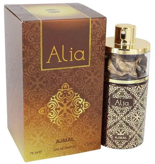 : br Ajmal Alia is a strong, oriental fragrance. It was launched in 2016 and features a wide range of sweet and spicy notes that complement any wardrobe perfectly. The unique blend is made from notes of pink pepper, cardamom, bergamot, violet, sour lemon, Artemisia, cedar, vetiver, agarwood (oud), musk and patchouli.