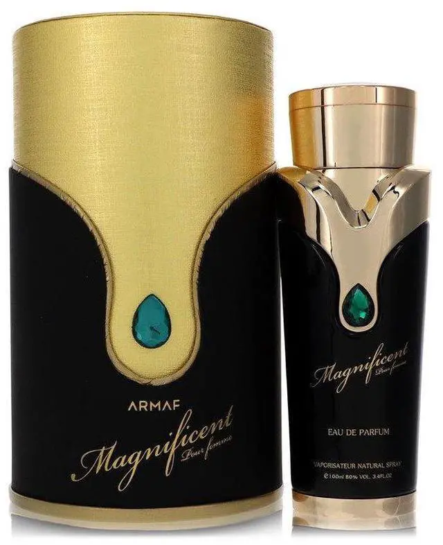 : br Armaf Magnificent is a fruity feminine fragrance from Armaf. Sweet, refreshing notes of black currant and raspberry form the top layer of the perfume. These are complemented by spicy notes of pink pepper.