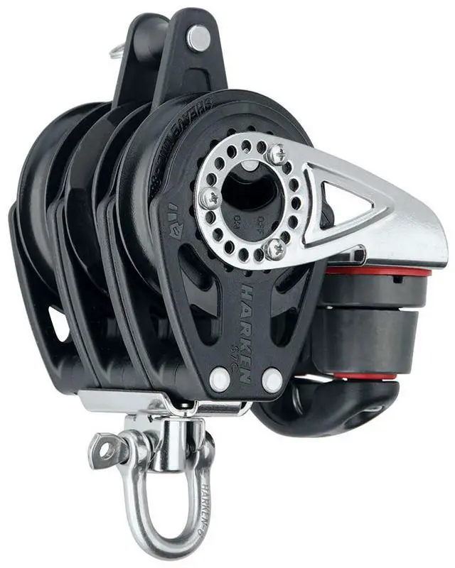 57mm Triple Carbo Block - Swivel, Becket, Cam CleatCarbo Ratchets allow sailors to hand-hold loaded lines and offer a balance between holding power and controlled easing.