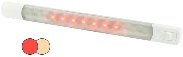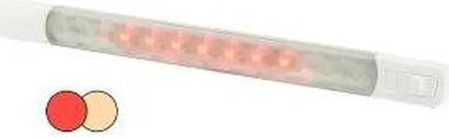 pbSurface Strip Light wSwitch - Warm WhiteRed LEDs - 12VbppThe Surface Mount Strip lamps from Hella marine feature an innovative waterproof switch for reliable operation. Completely sealed, UV and corrosion resistant and an ultra-low profile these install lamps are easy to install and ideal for interior or exterior applications.brppOffering exceptional light output and an ultra-low power consumption of 3W, these lamps are an ideal replacement for bulky fluorescent lighting. Producing 250 lumens (White) and offering a leading CRI rating of 85 these LEDs will enhance the appearance of your vessel and provide bright and accurate illumination.brppThe sealed switch system prevents moisture and other contaminants from effecting electronics, while the low profile design offers an effortless surface mount installation almost anywhere on board. Fastenings at each end of the lamp body are covered by snap-on end caps for a clean and modern appearance.brppPurpose designed for the harsh marine envi