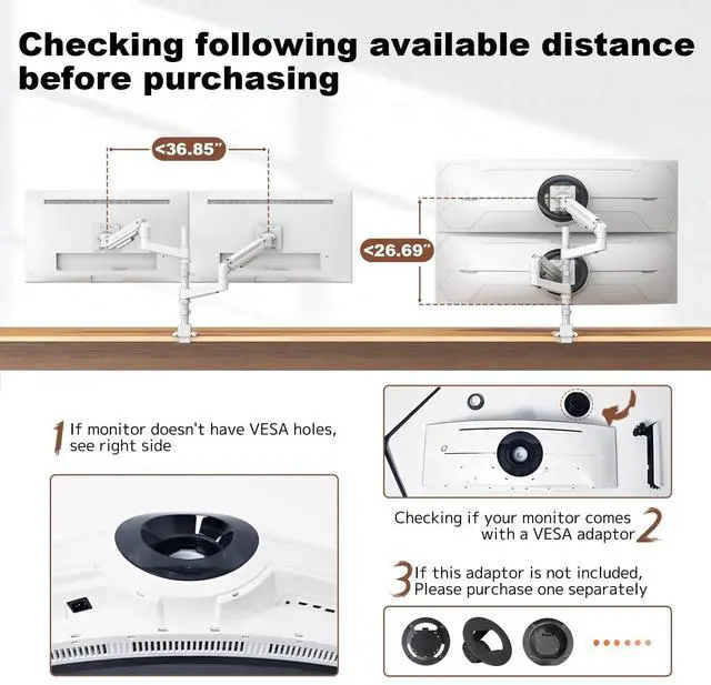 VESA Compatible Fits 75x75mm & 100x100mm: Works with most monitors using standard VESA mounts. If your display is non-VESA, a compatible adapter (sold separately) is required. Always double-check your monitor specs for a secure fit
