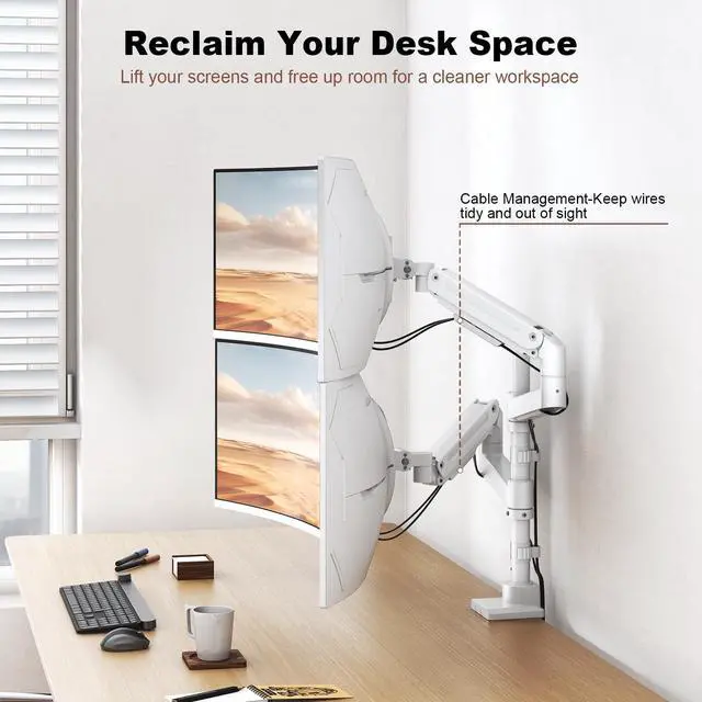Dual Monitor Vertical Stacking: Get a clean, ergonomic vertical setup with the extended center pole. Stack two ultrawide monitors for maximum screen space and an improved posture, whether you're editing videos, coding, or multitasking like a pro
