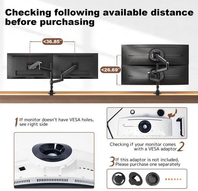 VESA Compatible Fits 75x75mm & 100x100mm: Works with most monitors using standard VESA mounts. If your display is non-VESA, a compatible adapter (sold separately) is required. Always double-check your monitor specs for a secure fit