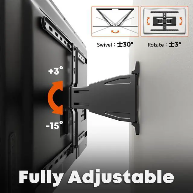 Flexible Viewing Angles:Easily adjust your screen with +3°/-15° tilt,+/-30° swivel, and +/-3° screen leveling for the perfect viewing angle. Great for reducing glare and enhancing comfort in any room setup