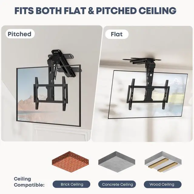 Space-Saving & Modern Retracts When Not in Use: When youre done watching, the mount folds your TV flat against the ceiling, freeing up floor and wall space. Enjoy a clean, minimalist look in any room perfect for living rooms, bedrooms, home offices, RVs, or game rooms