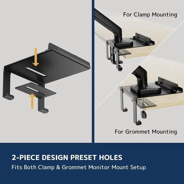 Universal Compatibility: Works with most clamp- or grommet-mounted monitor arms. The large surface and pre-drilled holes provide a secure fit for a wide range of setups, from home offices to gaming stations