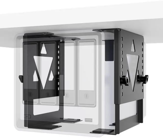 Space-Saving Design: Frees up valuable desk real estate by mounting your computer discreetly under the work surface, keeping it out of sight yet within easy reach