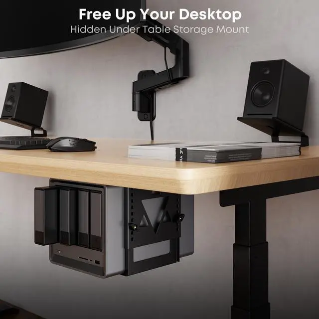 Width-Adjustable Design: Features flexible side brackets to securely fit Mac Mini with Dock, xbox, Intel NUC, NAS, DVD and other small form factor computers beneath your desk or workstation
