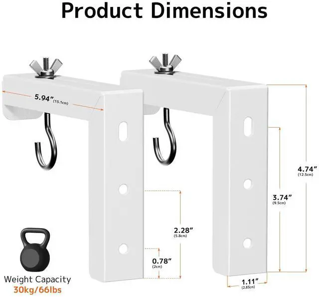 PUTORSEN Universal Projector Screen Ceiling Mount L-Brackets, Wall Hanging Mount 6 inch Adjustable Extension with Hook Kit, Hold up to 66 lbs, White