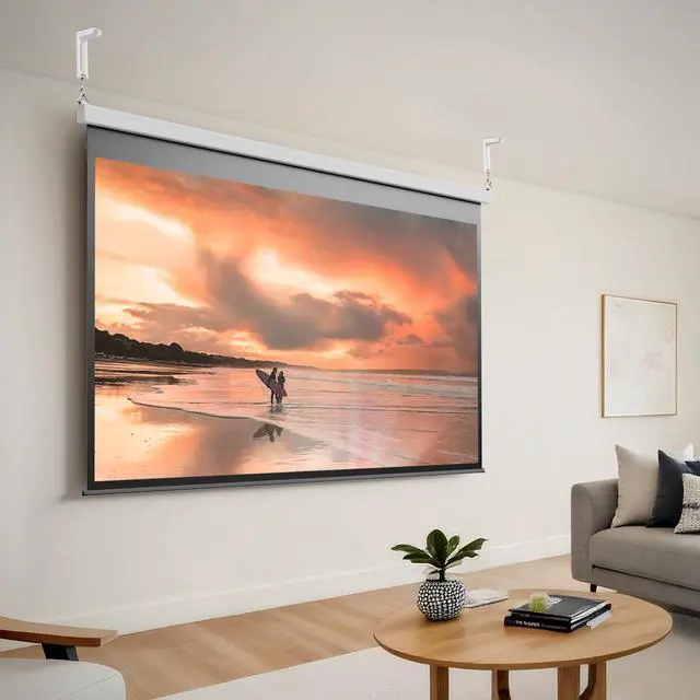 2. Adjustable: You can hang your screen 1.5 to 5 from the wall to optimize the placement of your projector screen. Allowing for corner, chalkboard or television clearance