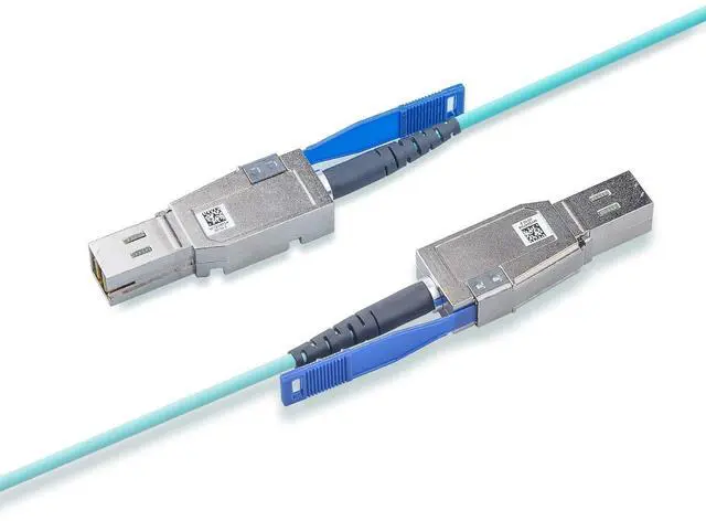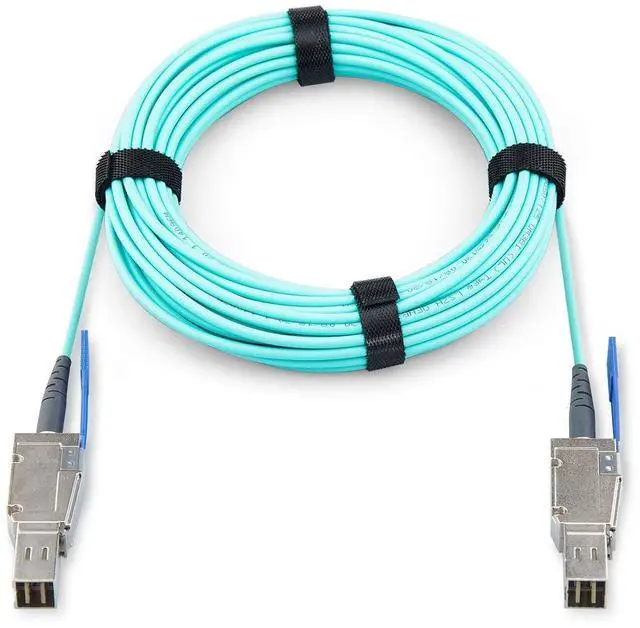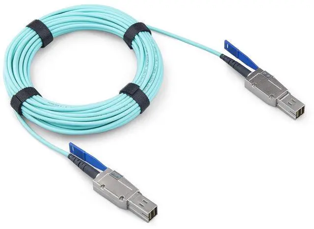 Four bi-directional Optical data links per end, operating at data rates from 1.0 to 12.0 (aggregated 48.0 ) Gbps, Compatible with multiple protocols including InfiniBand* Fourteen Data Rate (FDR), 10 Gbps Ethernet, Fibre Channel (8 and 10 Gbps), SAS 2.0 and 3.0 (6 and 12 Gbps) and other protocol applications. It employs active optical technology, using SFF-8644 connectors on both ends, to provide up to 12Gbps per lane or 48Gbps aggregate bandwidth over extended distances with reduced EMI and improved signal integrity compared to copper-based solutions. This type of cable is ideal for demanding storage applications where high data transfer rates and long-distance connectivity are required.