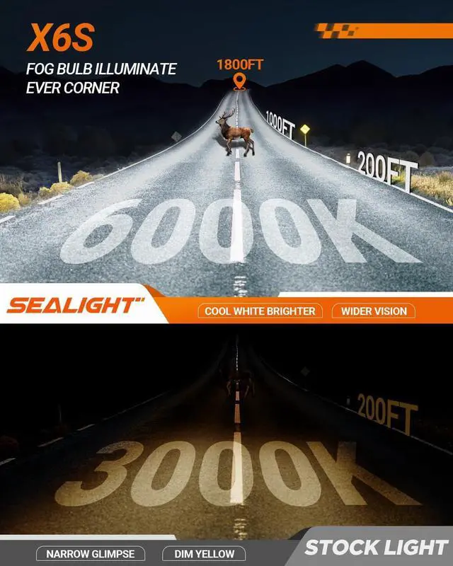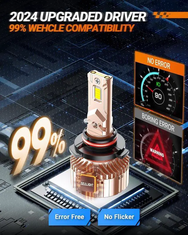 Vehicle Compatibility: SEALIGHT 9005 9006 auto lights combo compatible with 99.9 % of vehicle systems. No error warnings, radio interference, or flickering. For any help or questions, just let SEALIGHT Know