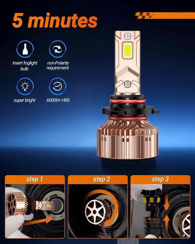 Hours Lifespan: 9005 9006 LED combo with dual cooling copper tube and 25, 000 RPM cooling fan helps speed down the core temperature, reached perfect balance of long-lasting lighting and service life99%