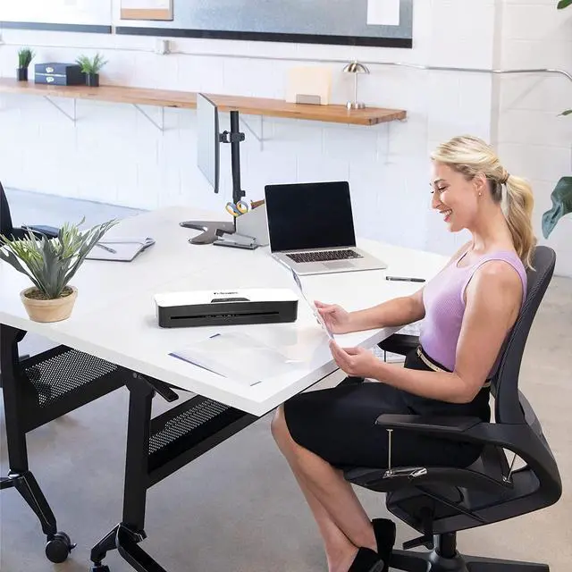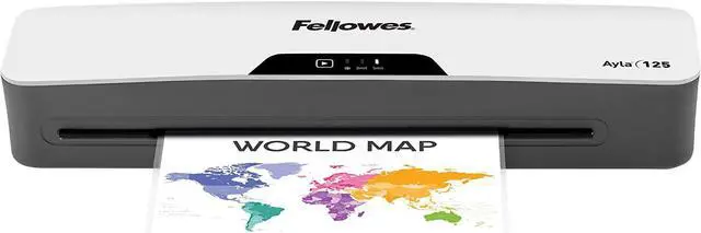 The Ayla 125 laminator features easy-to-use controls and offers quality lamination every-time for all of your different projects. May it be a school project, or a professional document it will give a nice and fancy look to everything. Designed for light use in the home or home office, this Fellowes laminator accommodates 12.5 inches wide documents and features advanced temperature control for consistent results. Offers versatile hot lamination of 3 or 5 mil pouches as well as cold pouches. The InstaHeat Technology delivers no wait rapid one-minute warm up and auto-shut off feature prevents overheating and saves energy. This laminating machine features a release lever to prevent paper jam. Its compact design makes it easy to place anywhere and is quiet, so there will be little to no noise and no disruption. Keep your reference material clean and neat, create long-lasting signs for events, or impress with laminating important presentations for a true professional look with our laminator. Includes Laminating Pouch starter kit.