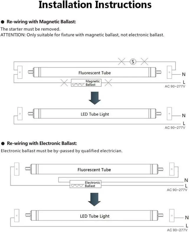 Easy to Install: Standard 8ft tube light with FA8 base, remove or bypass the existing ballast before installation, Input Voltage: AC 85-265V. Wattage: 65W (150W Equivalent), 6000K cool white, Working lifetime: over 30, 000 hrs.