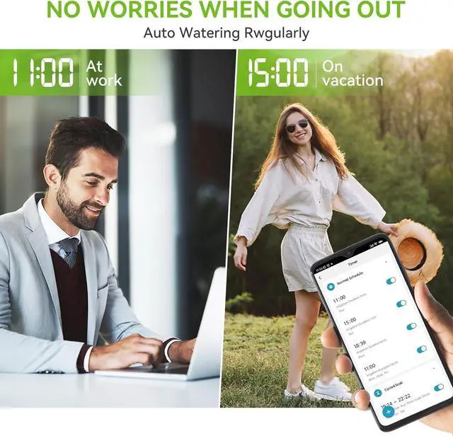 Rain Delay & Manual Watering: When it rains, you can easily set a delay of 24/48/72 hours on the APP before executing the watering schedule. And when you need temporary watering, you can turn on manual watering with one click without affecting the watering schedule you set.