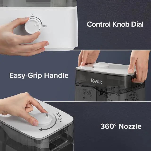 Classic300 Ultrasonic Top Fill Humidifier, Extra Large 6L Tank Last 60-Hour - Super Quiet, Easy to Use and Clean, 360° Rotation Nozzle, Simple Knob Control, Handle, Auto Shut Off, Gray