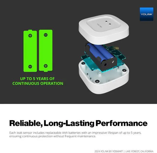 Performance: Each leak sensor includes replaceable AAA batteries with an impressive lifespan of up to 5 years, ensuring continuous protection without frequent maintenance.