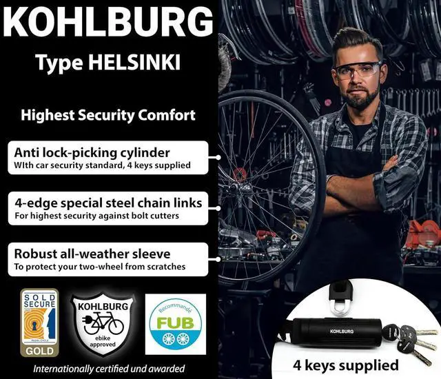 HIGH SECURITY CHAIN The lock chain provides a high level of security against bolt cutters & hacksaws due to the 0.33" / 8.3 mm strong 4-edge links. Additionally, the lockhead offers an anti-lock-picking cylinder. To also protect your bikes varnish, the chain is coated with a soft & robust sleeve. The lock comes with 4 keys.